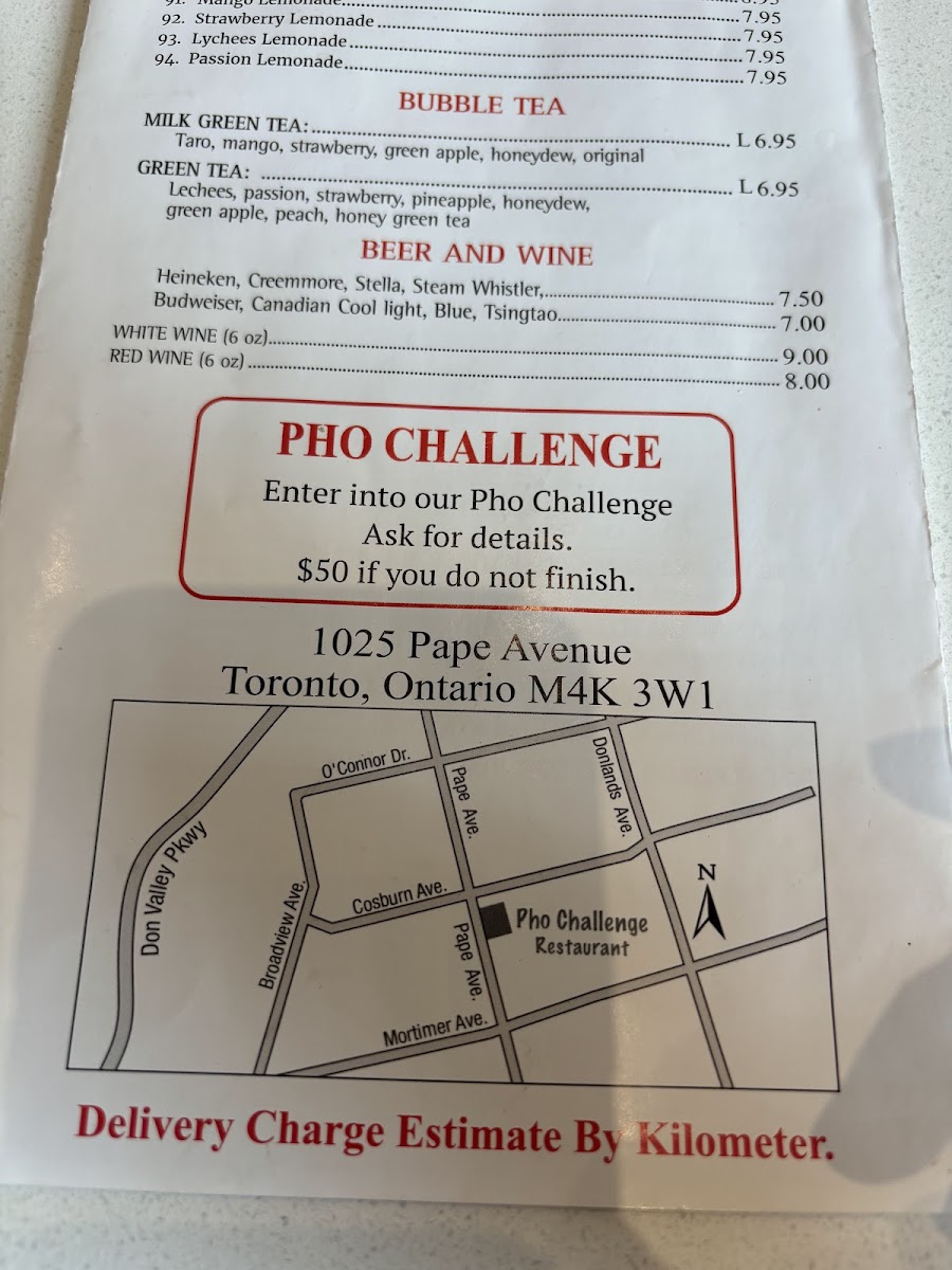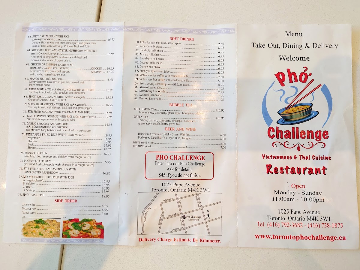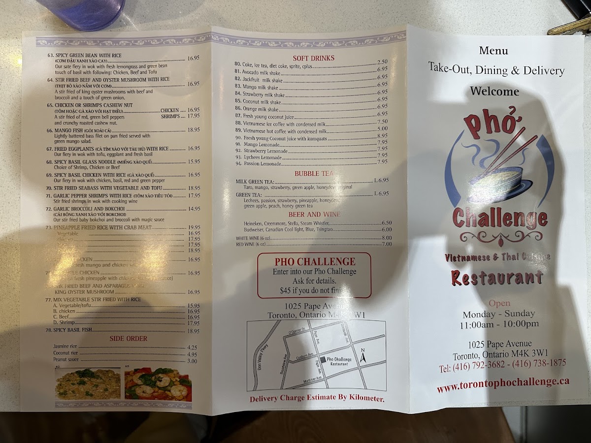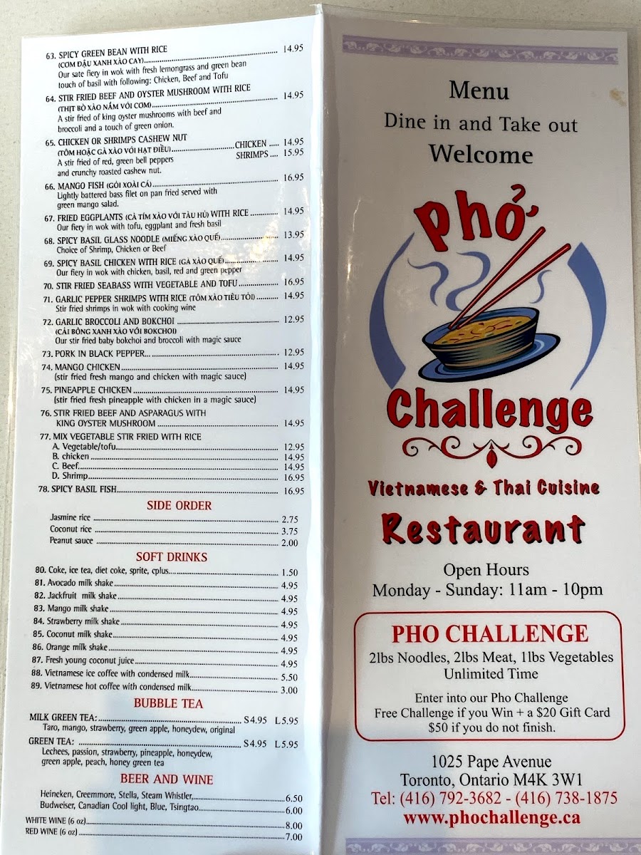 Welcome to Pho Challenge, a delightful Vietnamese restaurant nestled in the heart of East York, Ontario, at 1025 Pape Ave. Capturing the essence of traditional Vietnamese cuisine, this culinary gem has earned a loyal following among locals and food enthusiasts alike for its rich flavors, vibrant dishes, and warm service.